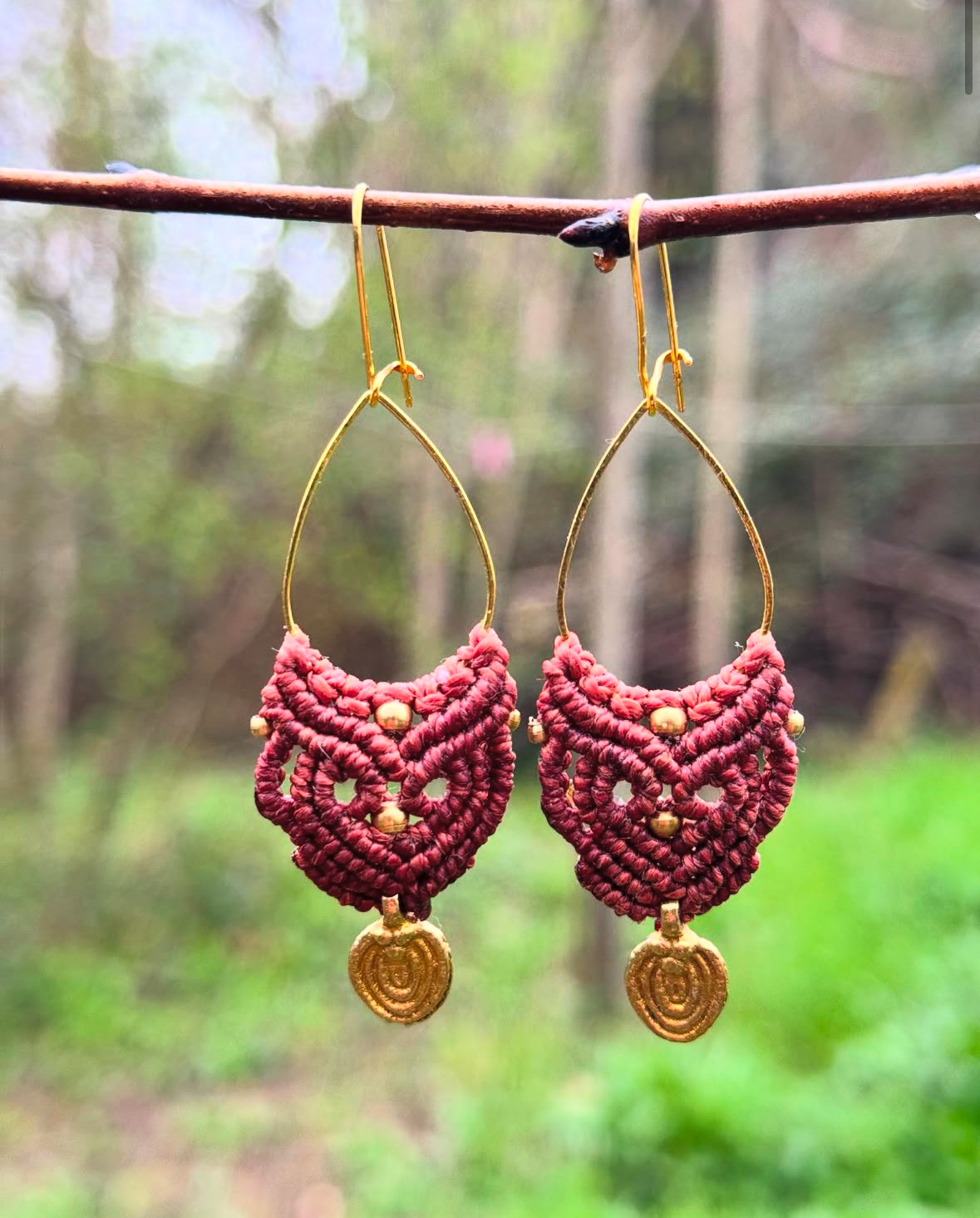 Boucles d’oreille en micro macramé, avec quelques perles en laiton. Attache & arceau en OR fin. 🌺