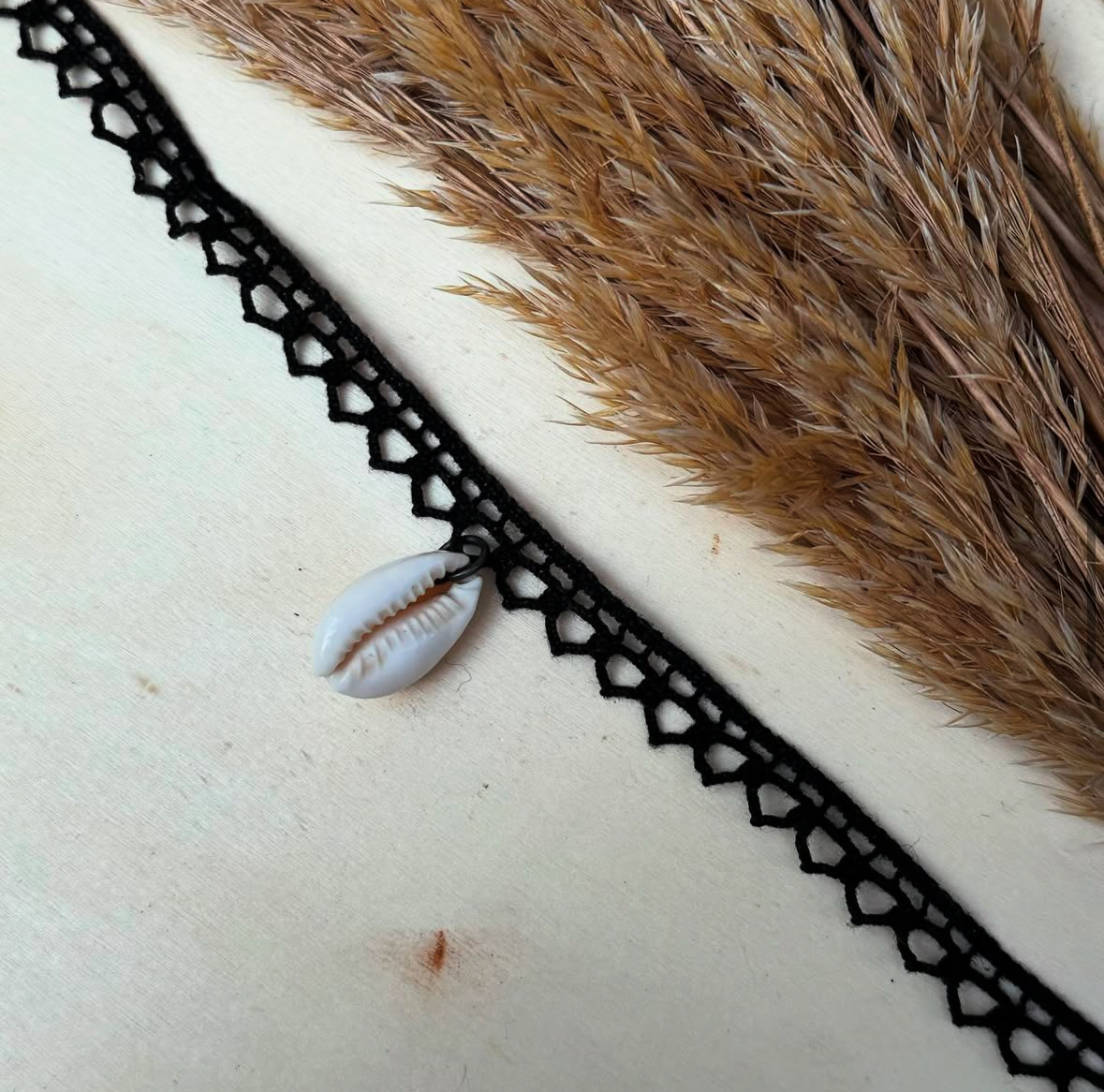 Ras-du-cou en coton noir, agrémenté d’un joli coquillage 🐚 Attache en argent, acier inoxydable